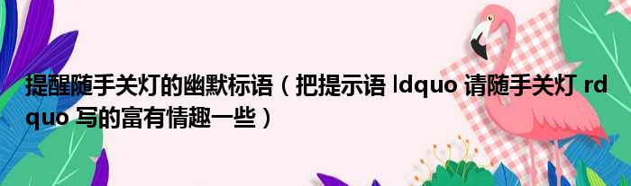 提醒随手关灯的幽默标语(把提示语 ldquo 请随手关灯 rdquo 写的富有情趣一些)