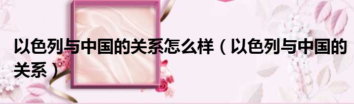 以色列与中国的关系怎么样(以色列与中国的关系)