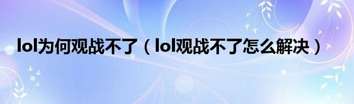 导读 大家好,今天小六子来为大家解答以下的问题,关于lol为何观战不了,lol观战不了怎么解决这个很多人还不知道,现在让我们一起来看看吧!1、正