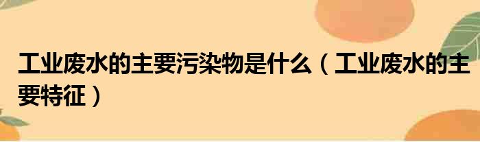 导读 大家好,今天小六子来为大家解答以下的问题,关于工业废水的主要污染物是什么,工业废水的主要特征这个很多人还不知道,现在让我们一起来看