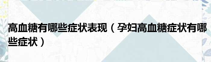高血糖有哪些症状表现(孕妇高血糖症状有哪些症状)