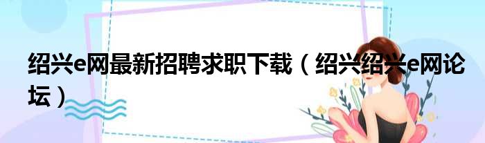 绍兴e网最新招聘求职下载(绍兴绍兴e网论坛)