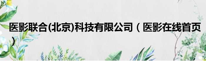 导读 大家好,今天小六子来为大家解答以下的问题,关于医影联合(北京)科技有限公司,医影在线首页这个很多人还不知道,现在让我们一起来看看吧!1