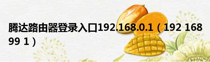 导读 大家好,今天小六子来为大家解答以下的问题,关于腾达路由器登录入口192 168 0 1,192 168 99 1这个很多人还不知道,现在让我们一起来看