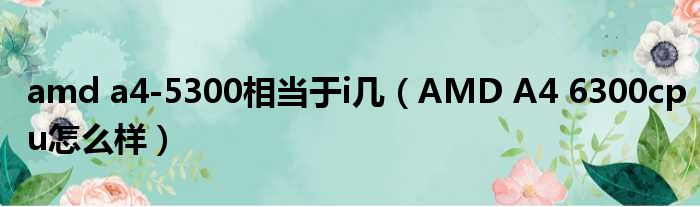 导读 大家好,今天小六子来为大家解答以下的问题,关于amd a4-5300相当于i几,AMD A4 6300cpu怎么样这个很多人还不知道,现在让我们一起来看看