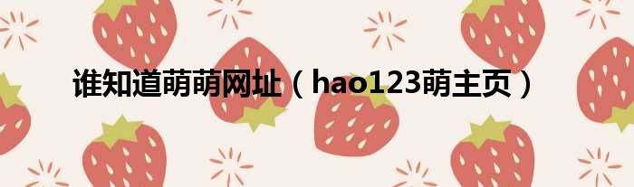 谁知道萌萌网址(hao123萌主页)