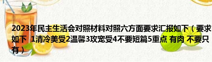 2023年民主生活会对照材料对照六方面要求汇报如下(要求如下 1清冷美受2温馨3攻宠受4不要短篇5重点 有肉 不要只有)