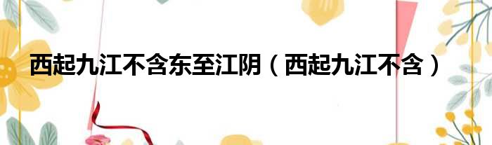 导读 大家好,今天小六子来为大家解答以下的问题,关于西起九江不含东至江阴,西起九江不含这个很多人还不知道,现在让我们一起来看看吧!1、不包