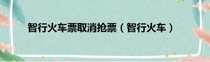 大家好,今天小六子来为大家解答以下的问题,关于智行火车票取消抢票,智行火车这个很多人还不知道,现在让我们一起来看看吧!