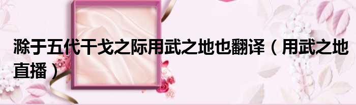 导读 大家好,今天小六子来为大家解答以下的问题,关于滁于五代干戈之际用武之地也翻译,用武之地直播这个很多人还不知道,现在让我们一起来看看