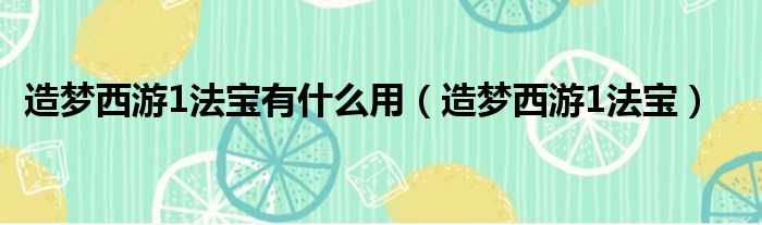 造梦西游1法宝有什么用(造梦西游1法宝)