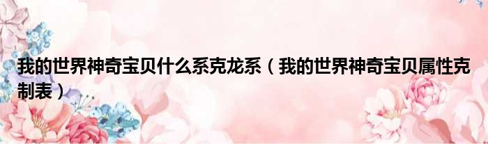 导读 大家好,今天小六子来为大家解答以下的问题,关于我的世界神奇宝贝什么系克龙系,我的世界神奇宝贝属性克制表这个很多人还不知道,现在让我