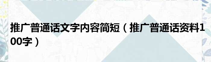推广普通话文字内容简短(推广普通话资料100字)