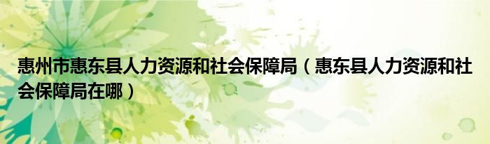 惠州市惠东县人力资源和社会保障局(惠东县人力资源和社会保障局在哪)