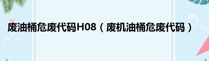 大家好,今天小六子来为大家解答以下的问题,关于废油桶危废代码H08,废机油桶危废代码这个很多人还不知道,现在让我们一起来看看吧!