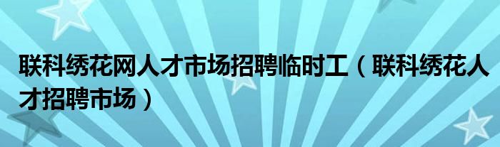 联科绣花网人才市场招聘临时工(联科绣花人才招聘市场)