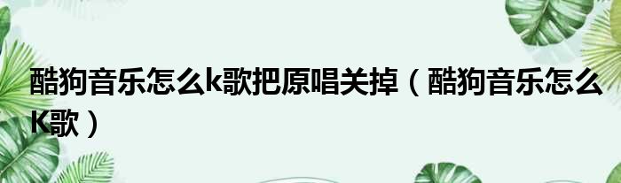 酷狗音乐怎么k歌把原唱关掉(酷狗音乐怎么K歌)