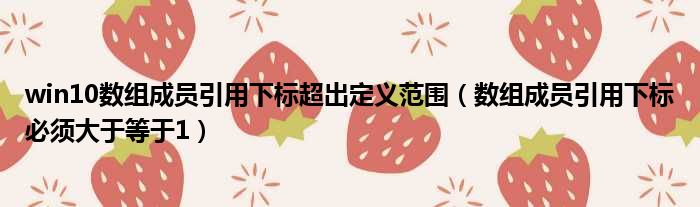 导读 大家好,今天小六子来为大家解答以下的问题,关于win10数组成员引用下标超出定义范围,数组成员引用下标必须大于等于1这个很多人还不知道,