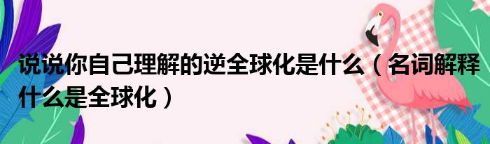 说说你自己理解的逆全球化是什么(名词解释什么是全球化)