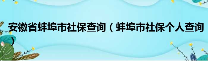 安徽省蚌埠市社保查询(蚌埠市社保个人查询)