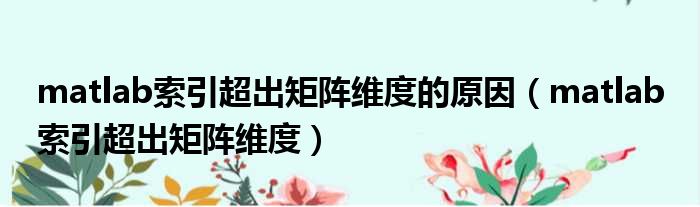 matlab索引超出矩阵维度的原因(matlab 索引超出矩阵维度)