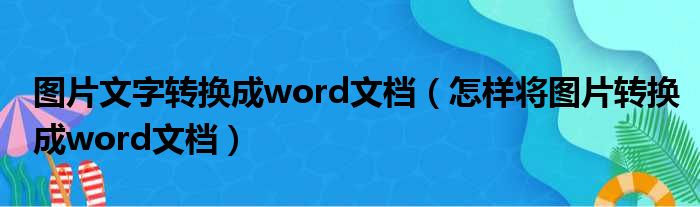 图片文字转换成word文档(怎样将图片转换成word文档)