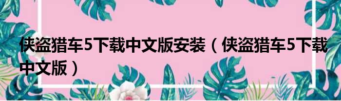 侠盗猎车5下载中文版安装(侠盗猎车5下载中文版)