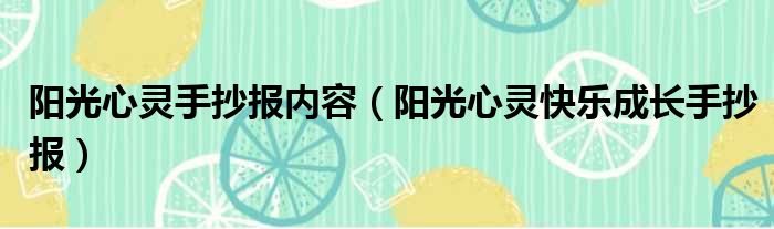 阳光心灵手抄报内容(阳光心灵快乐成长手抄报)