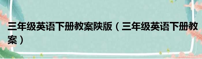 三年级英语下册教案陕版(三年级英语下册教案)