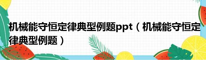 机械能守恒定律典型例题ppt(机械能守恒定律典型例题)