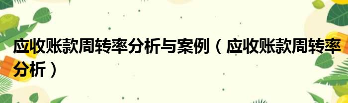 导读 大家好,今天小六子来为大家解答以下的问题,关于应收账款周转率分析与案例,应收账款周转率分析这个很多人还不知道,现在让我们一起来看看