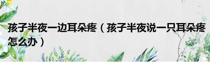 孩子半夜一边耳朵疼(孩子半夜说一只耳朵疼怎么办)