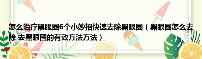 怎么治疗黑眼圈6个小妙招快速去除黑眼圈(黑眼圈怎么去除 去黑眼圈的有效方法方法)