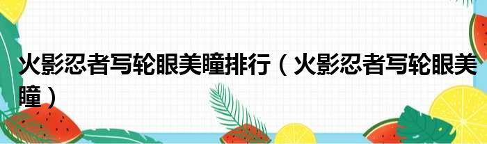 火影忍者写轮眼美瞳排行(火影忍者写轮眼美瞳)