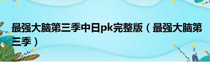 最强大脑第三季中日pk完整版(最强大脑第三季)