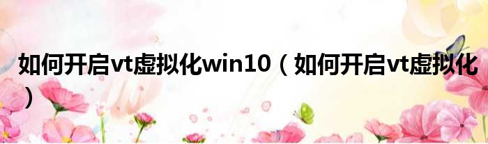 如何开启vt虚拟化win10(如何开启vt虚拟化)
