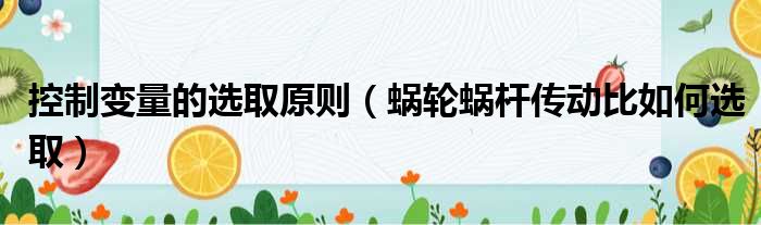 控制变量的选取原则(蜗轮蜗杆传动比如何选取)