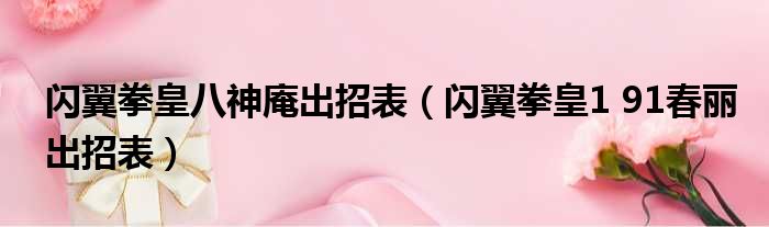 导读 大家好,今天小六子来为大家解答以下的问题,关于闪翼拳皇八神庵出招表,闪翼拳皇1 91春丽出招表这个很多人还不知道,现在让我们一起来看看