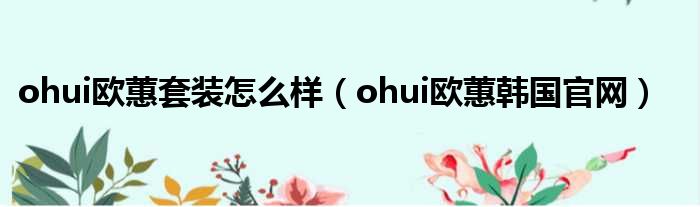 导读 大家好,今天小六子来为大家解答以下的问题,关于ohui欧蕙套装怎么样,ohui欧蕙韩国官网这个很多人还不知道,现在让我们一起来看看吧!1、oh