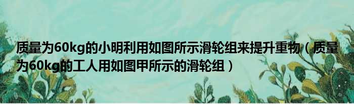导读 大家好,今天小六子来为大家解答以下的问题,关于质量为60kg的小明利用如图所示滑轮组来提升重物,质量为60kg的工人用如图甲所示的滑轮组这