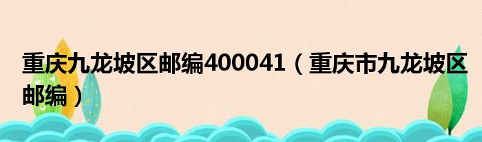 重庆九龙坡区邮编400041(重庆市九龙坡区邮编)