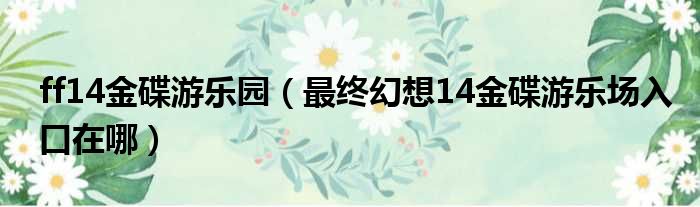 导读 大家好,今天小六子来为大家解答以下的问题,关于ff14金碟游乐园,最终幻想14金碟游乐场入口在哪这个很多人还不知道,现在让我们一起来看看