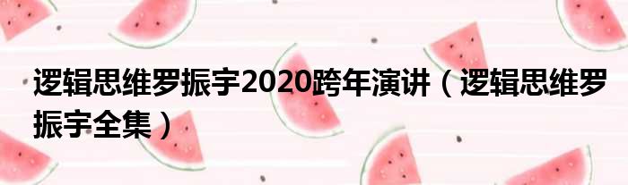 导读 大家好,今天小六子来为大家解答以下的问题,关于逻辑思维罗振宇2020跨年演讲,逻辑思维罗振宇全集这个很多人还不知道,现在让我们一起来看