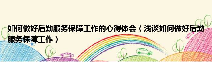 如何做好后勤服务保障工作的心得体会(浅谈如何做好后勤服务保障工作)