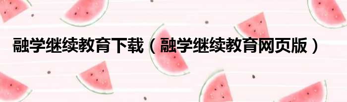 导读 大家好,今天小六子来为大家解答以下的问题,关于融学继续教育下载,融学继续教育网页版这个很多人还不知道,现在让我们一起来看看吧!1、如