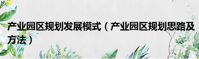 产业园区规划发展模式(产业园区规划思路及方法)