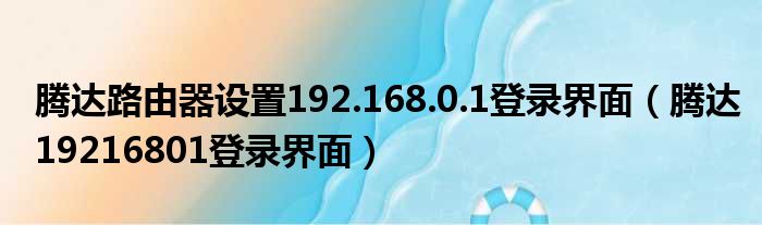 腾达路由器设置192.168.0.1登录界面(腾达19216801登录界面)
