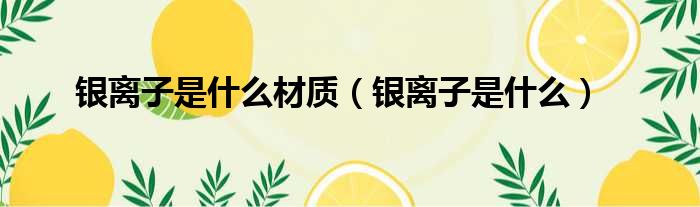 导读 大家好,今天小六子来为大家解答以下的问题,关于银离子是什么材质,银离子是什么这个很多人还不知道,现在让我们一起来看看吧!1、银离子是