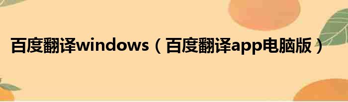 导读 大家好,今天小六子来为大家解答以下的问题,关于百度翻译windows,百度翻译app电脑版这个很多人还不知道,现在让我们一起来看看吧!1、百度