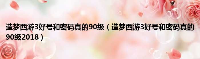 导读 大家好,今天小六子来为大家解答以下的问题,关于造梦西游3好号和密码真的90级,造梦西游3好号和密码真的90级2018这个很多人还不知道,现在